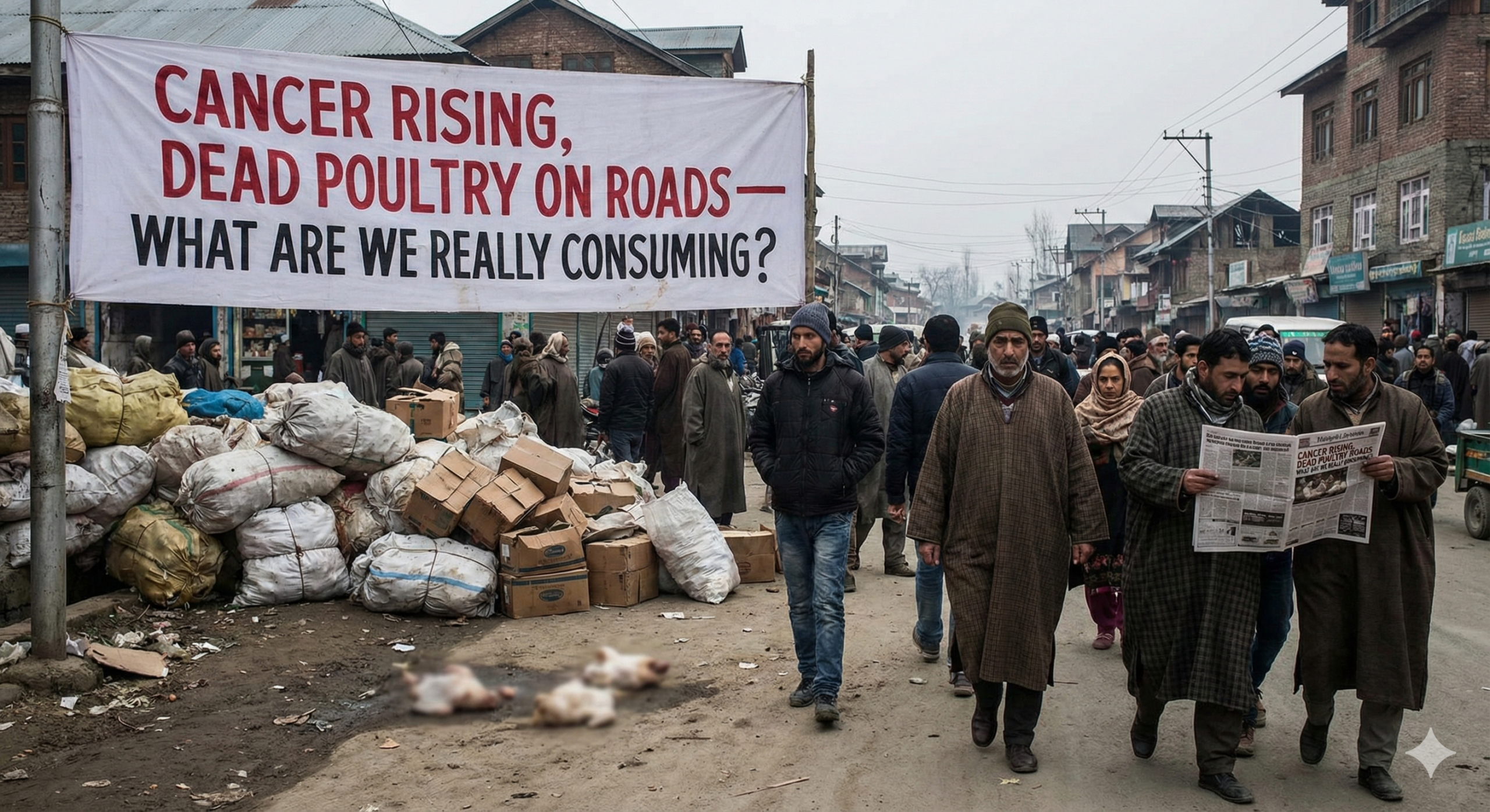 Kashmir woke up today to two headlines—each unsettling on its own, but terrifying when placed side by side. In one case, 119 dead chickens were found in a truck reportedly declared ‘clean’ by officials, stirring outrage and disbelief among citizens. The second, equally grim revelation, was data showing that Jammu and Kashmir is recording nearly 38 new cancer cases every day, amounting to over 67,000 cases in five years.