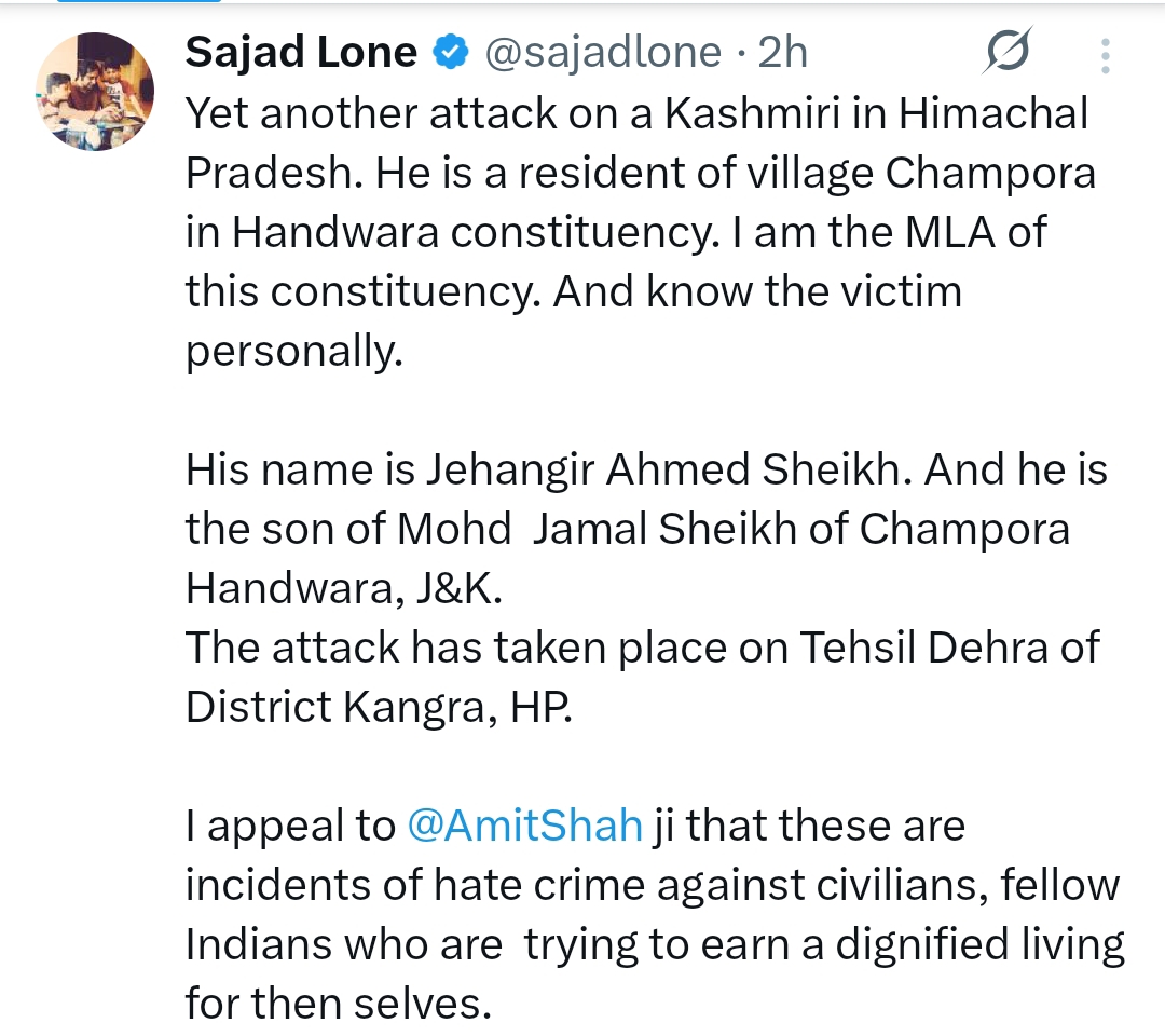 The victim has been identified as Jahangir Ahmed, a resident of Kashmir, who for the past nearly 15 years has been travelling to Himachal Pradesh every winter to sell traditional Kashmiri suits. According to the victim, the attack occurred when a group of men intercepted him, physically assaulted him, forcibly took away his merchandise and cash, and issued threats warning him not to return to the state again.