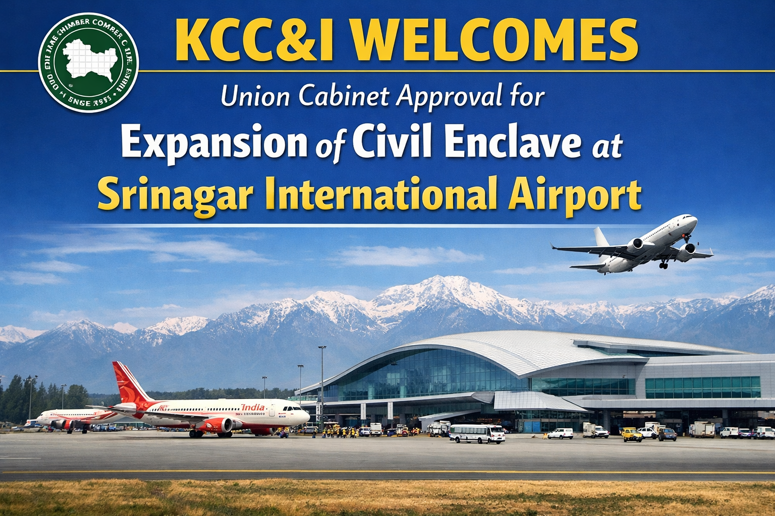 Srinagar: The Kashmir Chamber of Commerce and Industry (KCC&I) has welcomed the Union Cabinet’s approval for the major expansion of the Civil Enclave at Srinagar International Airport, terming it a landmark decision for the economic development of Jammu and Kashmir.
