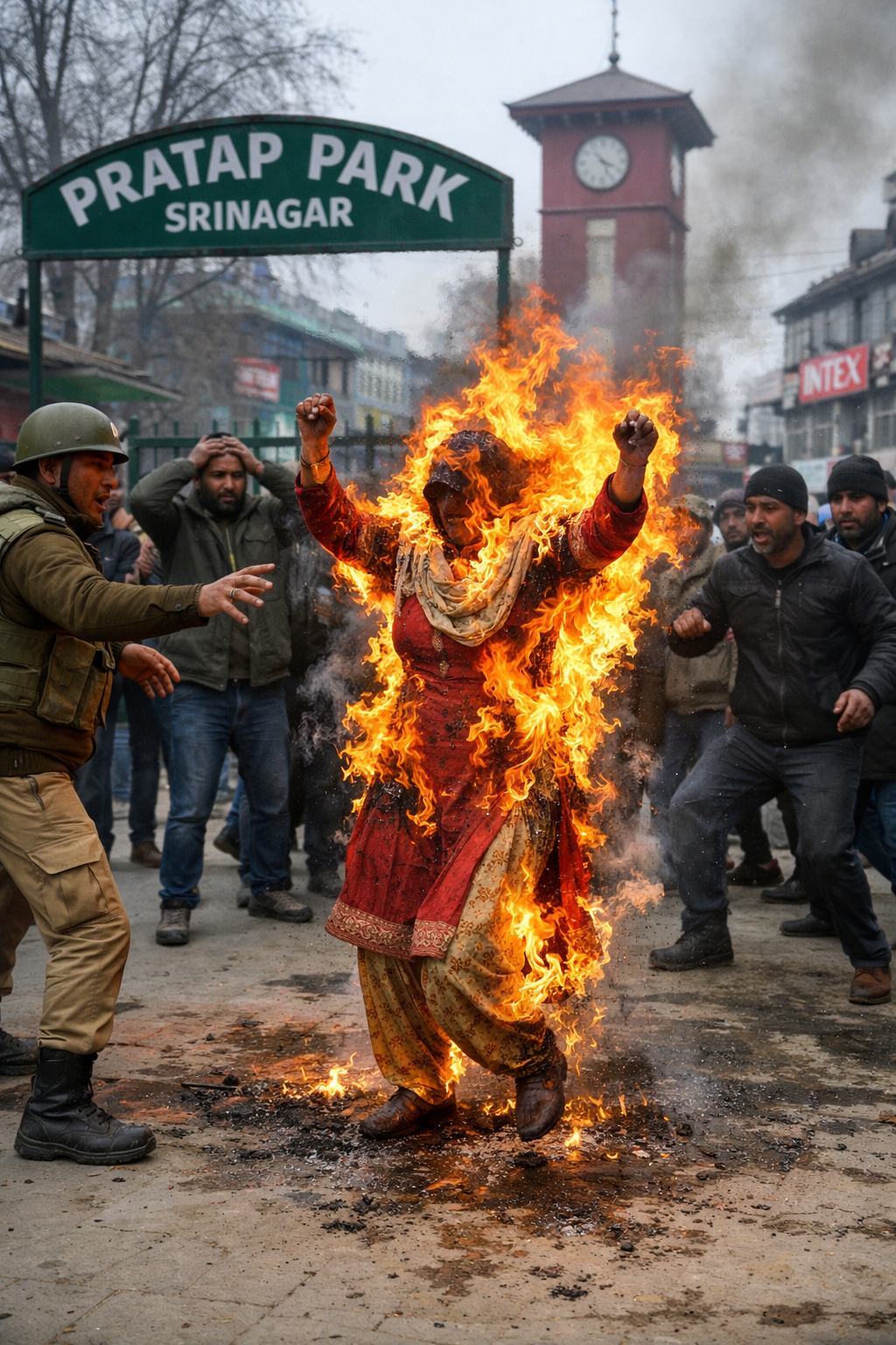 Srinagar, Apr 15 (KNO): A woman allegedly set herself abalze at Partap Park in the Lal Chowk area of Srinagar on Wednesday afternoon, officials said.